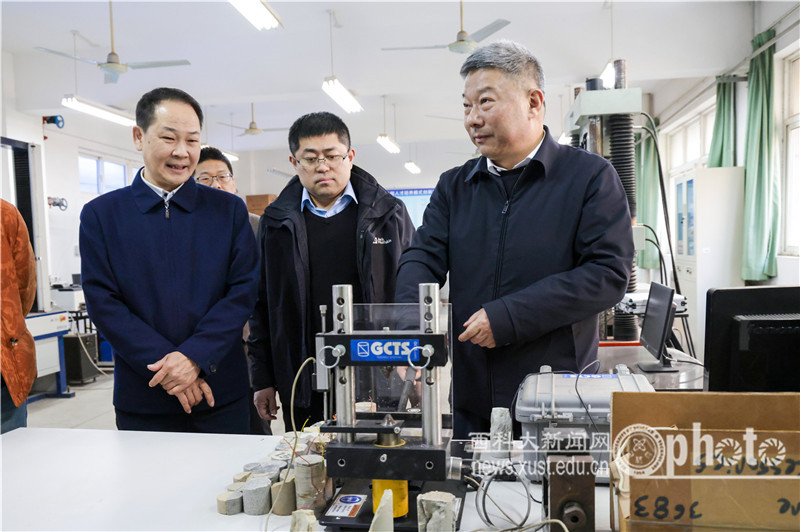 调研期间,来兴平一行先后来到建筑与土木工程学院、理学院、能源与矿业工程学院、材料科学与工程学院、化学与化工学院、机械工程学院实验中心。每到一处,校领导都仔细察看实验室硬件设施、环境布局、文化建设及安全设施配备情况,详细询问实验室教师队伍建设、实验课程开设、设备更新维护以及面向学生开放的实际状况,与一线师生深入交流,听取意见建议。